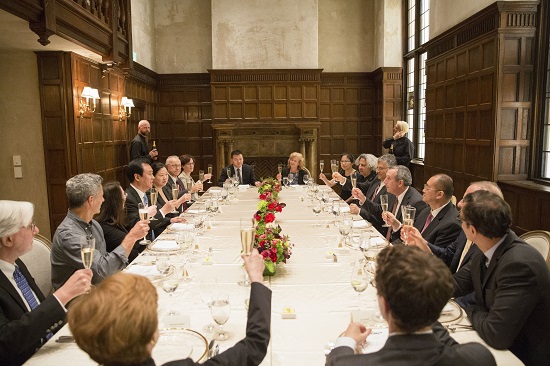 会谈结束后,Lawrence S.Bacow校长全程陪同参观了哈佛校园和美国第六大艺术馆哈佛艺术博物馆,并于当晚特意在博物馆隆重宴请了许家印一行。恒大集团董事局副主席、总裁夏海钧,副总裁陈敏、史俊平,以及哈佛大学常务副校长Alan M. Garber,哈佛大学校长助理Peggy Newel、Mary Beth Pearlberg,哈佛医学院院长George Q.Daley,设计学院院长Mohsen Mostafavi,基础科学与研究学院院长David E.Golan,恒大免疫疾病中心联席院长Vijay Kuchroo、Arlene Sharpe,绿色建筑与城市中心主任Ali Malkawi等14位哈佛大学领导班子和相关院系负责人出席活动。