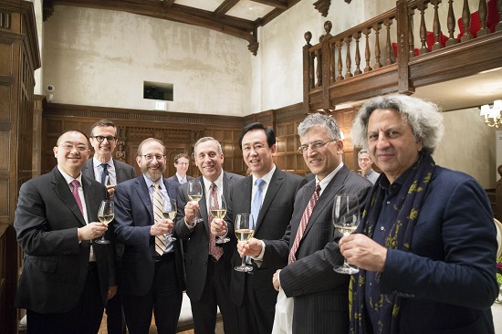 恒大集团董事局主席许家印、总裁夏海钧在欢迎晚宴上与哈佛校长、常务副校长、设计学院院长、免疫疾病中心联席院长合影